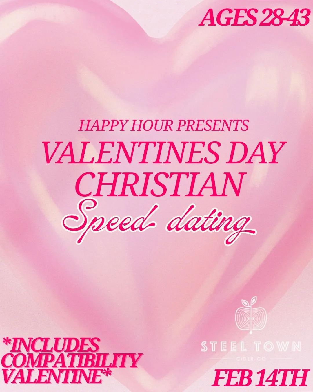 Happy Hour presents our first ever Christian Speed Dating event! Join us on Valentines Day and meet someone who aligns with your values!