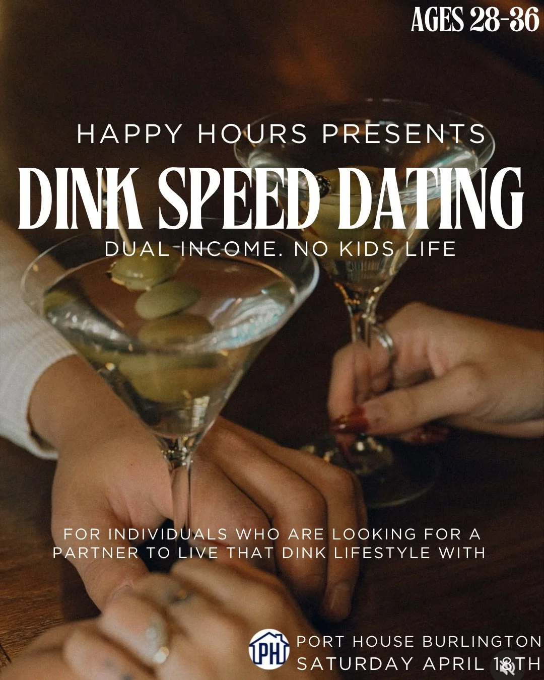 Happy Hour is excited to host another DINK Speed Dating. This event is to connect individuals that are looking to live a kid free lifestyle! This theme lets you jump in knowing you are on the same page on at least on important lifestyle topic!