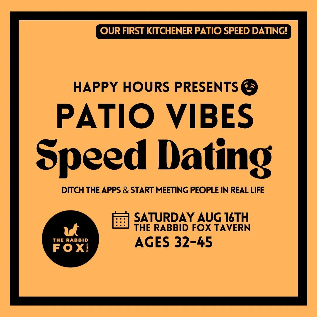 Happy Hour presents Saturday Speed Dating @ The Rabbid Fox Tavern! Enjoy a weekend afternoon at our first Kitchener patio event!